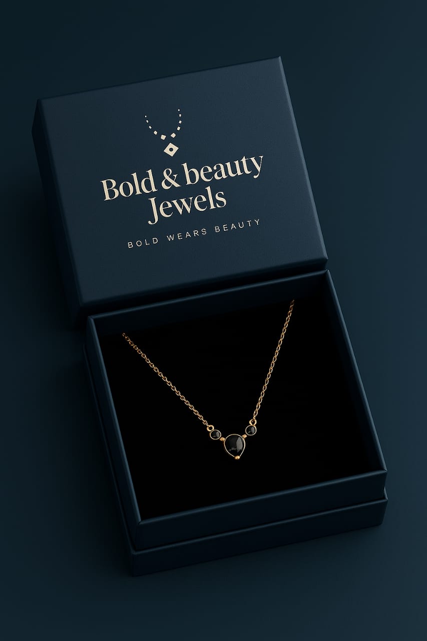 Add a touch of understated elegance to your look with our Elegant Black Stone Pendant Necklace. Crafted with a delicate gold-tone chain, this necklace features a trio of shimmering black stones—one large central gem flanked by two smaller accents—designed to captivate attention without overwhelming your outfit.